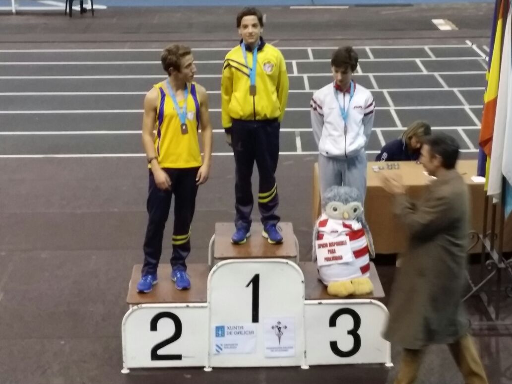 No Pazo de Deportes de Riazor disputouse o CAMPIONATO DE GALICIA CADETE EN PISTA CUBERTA, dividido en xornadas de maña e tarde. Na primeira parte contamos coa presencia de David Lorenzo nos 300 m.l, quen acadou o quinto mellor tempo das series, non pasou a final por centesimas xa que eran os catro mellores tempos. Adrián Outeiral realizou un concurso de salto de lonxitude moi regular, con todos os saltos por riba dos 5 metros, iso valeulle para obter a medalla de bronce, cun mellor salto de 5.27. Dani Calvar e Raúl Prieto participaron no lanzamento de peso, acadando o 9º e 11º posto repectivamente. David Lorenzo reapareceu nos 50 metros valados, acadando o Subcampionato Galego nun final superaxustado co Campión. Voltaría o podio de pértega como Campión Galego acompañado de Dani Calvar, en 2º posto, Daniel Armada foi 5º neste concurso. Notase a hiperactividade nos atletas das combinadas, Dani Calvar facia un 4º posto en triplo.